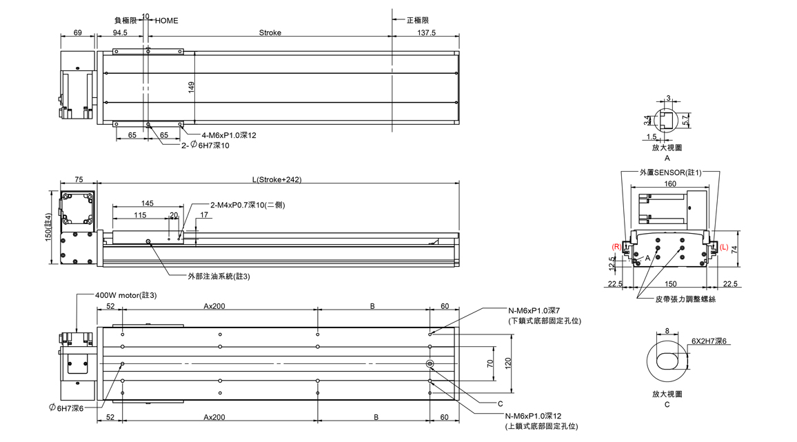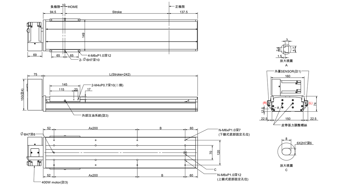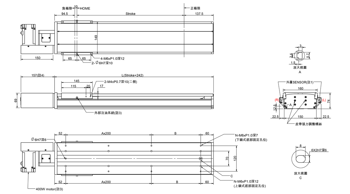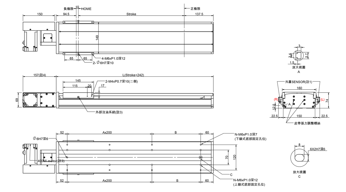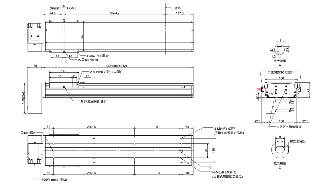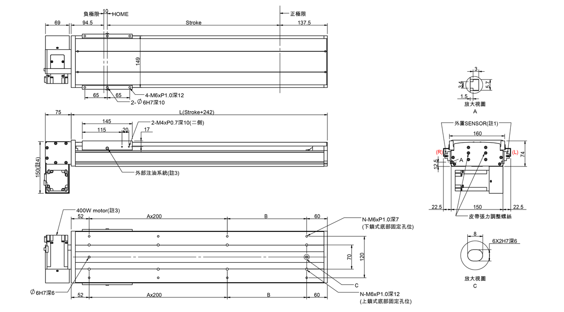 半密式皮帶傳動滑台(標準型滑軌)