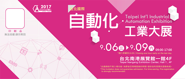 2017 台北國際自動化工業大展展出日期:2017/11/1~11/11地點:台北南港展覽館1館4F攤位號碼:L802、L804、L901、L903https://www.autotaiwan.com.tw/